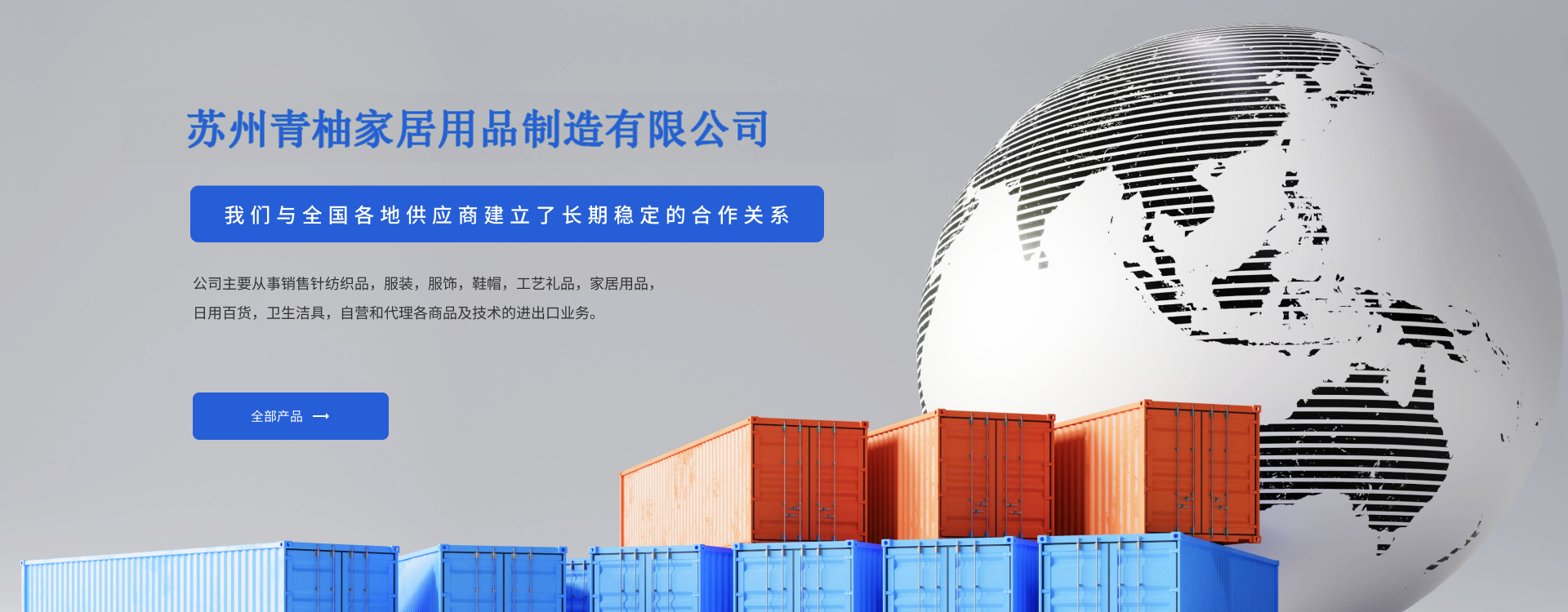 蘇州青柚家居用品制造有限公司,主要從事銷售針紡織品,服裝,服飾,鞋帽,工藝禮品,家居用品,日用百貨,衛(wèi)生潔具,自營(yíng)和代理各商品及技術(shù)的進(jìn)出口業(yè)務(wù)。公司與全國各地供應(yīng)商建立了長(zhǎng)期穩(wěn)定的合作關(guān)系。為了提供更好的品質(zhì)與服務(wù),旗下設(shè)立了倉儲(chǔ),檢品,檢驗(yàn),包裝為一體的公司,確保質(zhì)量的同時(shí)能夠按時(shí)交貨。